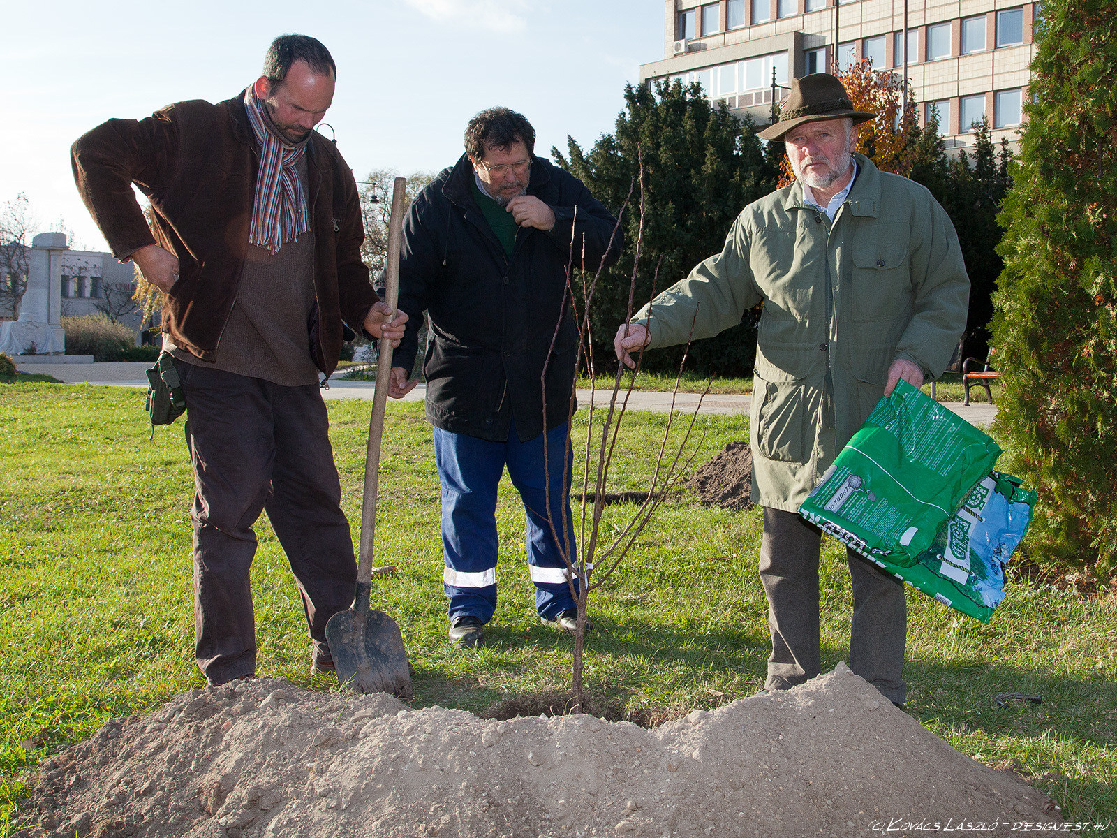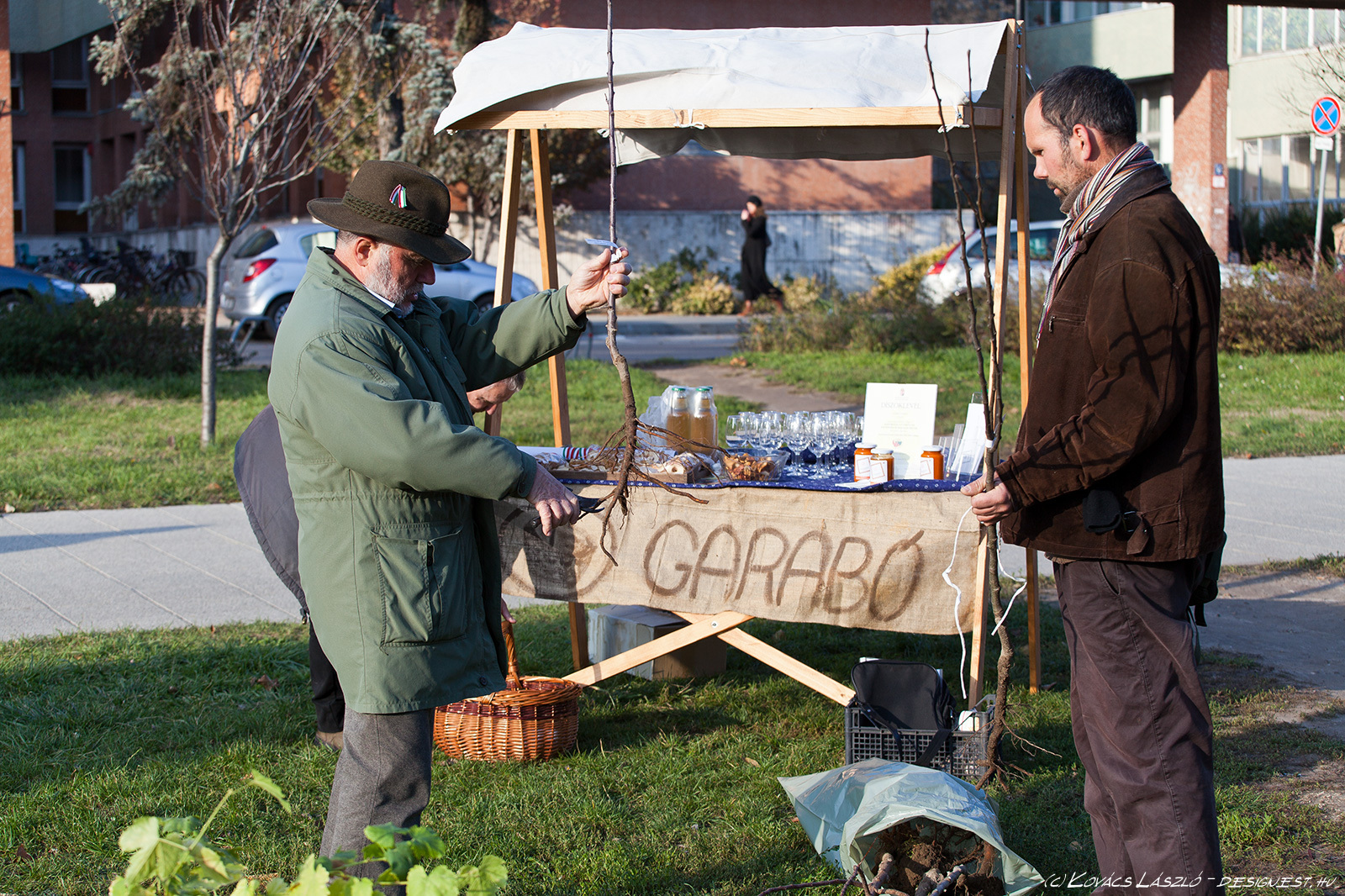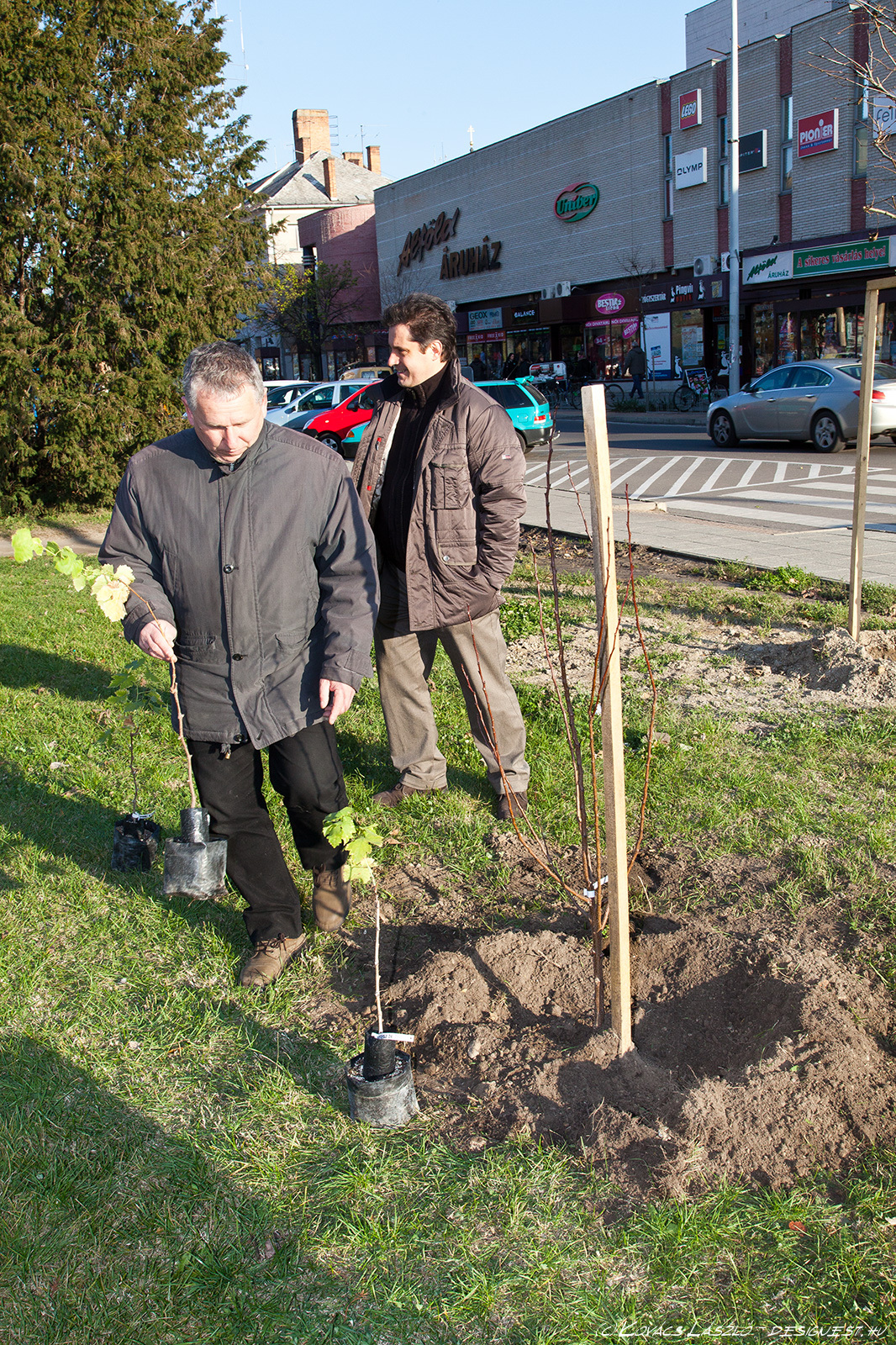 Gyümölcsfákat ültetett a Deák Ferenc téren a Garabó Nonprofit Közhasznú Kft. Most még csak hármat, de azt tervezik, hogy tavasszal folytatják a telepítést. A kijelölt területen még legalább 8-10 gyümölcsfa elfér és szőlőlugas is lesz. - A most elültetett három fa nemcsak alföldi, hanem kifejezetten kecskeméti fajta is – magyarázta a Kecskeméti Hírhatárnak Tormási Ákos (Garabó). Egy kecskeméti vajalma, kecskeméti muskotályos körte és kecskeméti kajszi került az Alföld áruház bejáratával szemben a földbe. A fákat Barna Tamás, a Barna és fiai faiskola ajánlotta fel a Garabónak, illetve Kecskeméten. Ezen kívül hoztak még az ültetéshez néhány szőlőtőkét is - Mathiász János által nemesített, régi kecskeméti fajtákat -, de ezeket inkább csak mutatóba. Nem most, hanem tavasszal ültetik le, mert nem bírnák ki a telet. A telepítésnél Mikulás Ferenc, a Kecskemétfilm Kft. igazgatója is jelen volt, mint a kecskeméti kajszi kultúra nagy támogatója. A Kecskemétfilm népmeséket feldolgozó alkotásaiban is megjelenik a szóló szőlő, a mosolygó alma, és a csengő barack – indokolták a szervezők, miért is segít nekik most Mikulás. Ráadásul ő volt az első Garabó-vásár díjazottja, jelenleg pedig a vásárok fővédnöke.