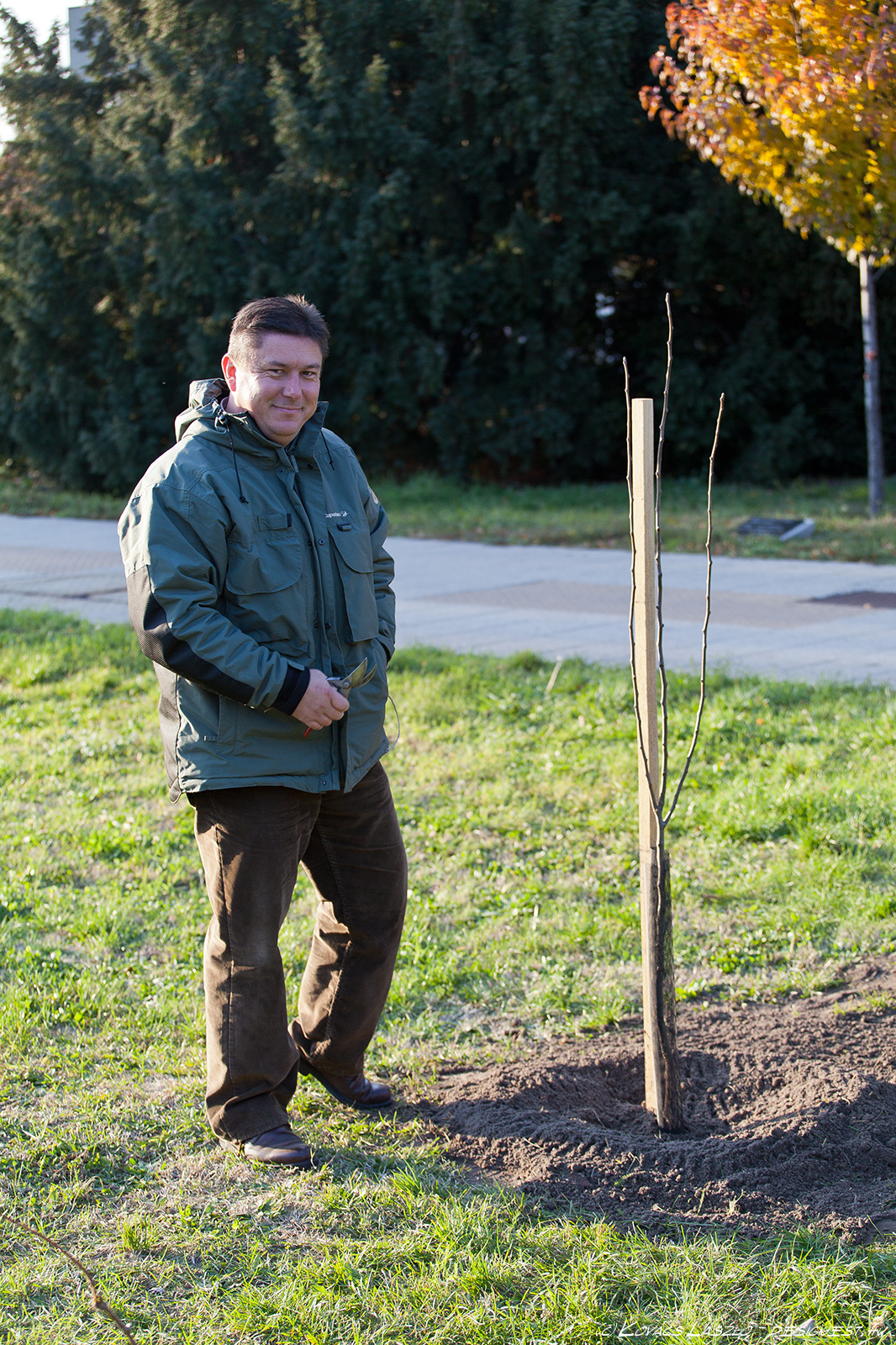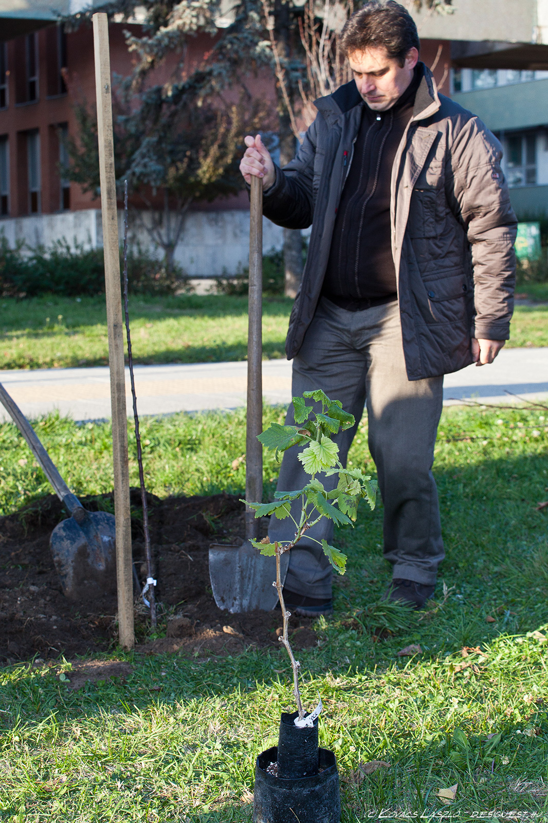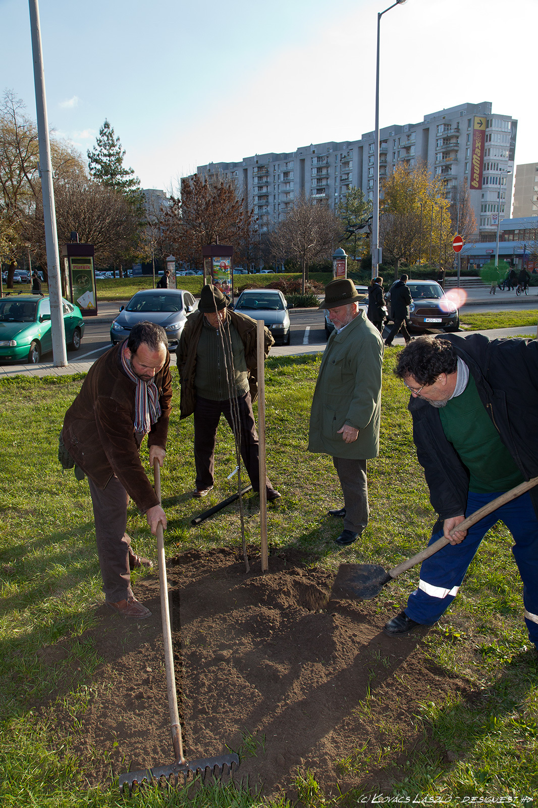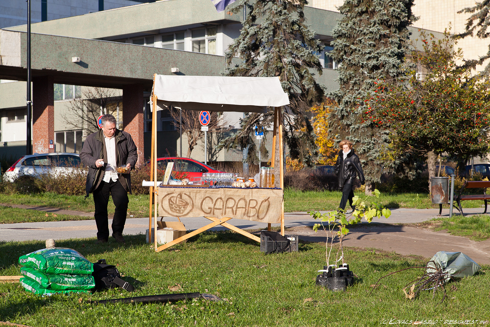 Gyümölcsfákat ültetett a Deák Ferenc téren a Garabó Nonprofit Közhasznú Kft. Most még csak hármat, de azt tervezik, hogy tavasszal folytatják a telepítést. A kijelölt területen még legalább 8-10 gyümölcsfa elfér és szőlőlugas is lesz. - A most elültetett három fa nemcsak alföldi, hanem kifejezetten kecskeméti fajta is – magyarázta a Kecskeméti Hírhatárnak Tormási Ákos (Garabó). Egy kecskeméti vajalma, kecskeméti muskotályos körte és kecskeméti kajszi került az Alföld áruház bejáratával szemben a földbe. A fákat Barna Tamás, a Barna és fiai faiskola ajánlotta fel a Garabónak, illetve Kecskeméten. Ezen kívül hoztak még az ültetéshez néhány szőlőtőkét is - Mathiász János által nemesített, régi kecskeméti fajtákat -, de ezeket inkább csak mutatóba. Nem most, hanem tavasszal ültetik le, mert nem bírnák ki a telet. A telepítésnél Mikulás Ferenc, a Kecskemétfilm Kft. igazgatója is jelen volt, mint a kecskeméti kajszi kultúra nagy támogatója. A Kecskemétfilm népmeséket feldolgozó alkotásaiban is megjelenik a szóló szőlő, a mosolygó alma, és a csengő barack – indokolták a szervezők, miért is segít nekik most Mikulás. Ráadásul ő volt az első Garabó-vásár díjazottja, jelenleg pedig a vásárok fővédnöke.