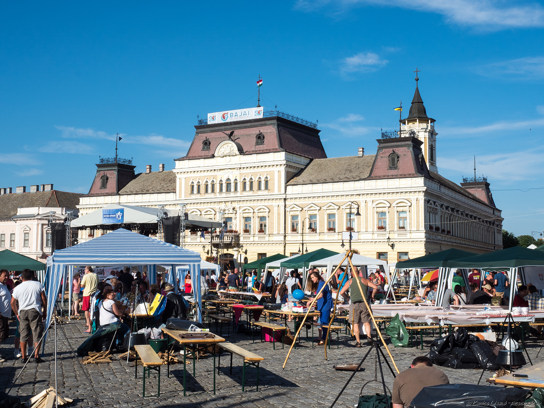 Nem szűkölködött ünnepélyes momentumokban a 20. Halfőző Fesztivál hivatalos megnyitója: július 11-én, szombat délután a Szentháromság téren, ahol Szöllősi Györgyi köszöntötte a megjelent vendégeket, majd Fercsák Róbert, Baja polgármestere mondott rövid köszöntőt.