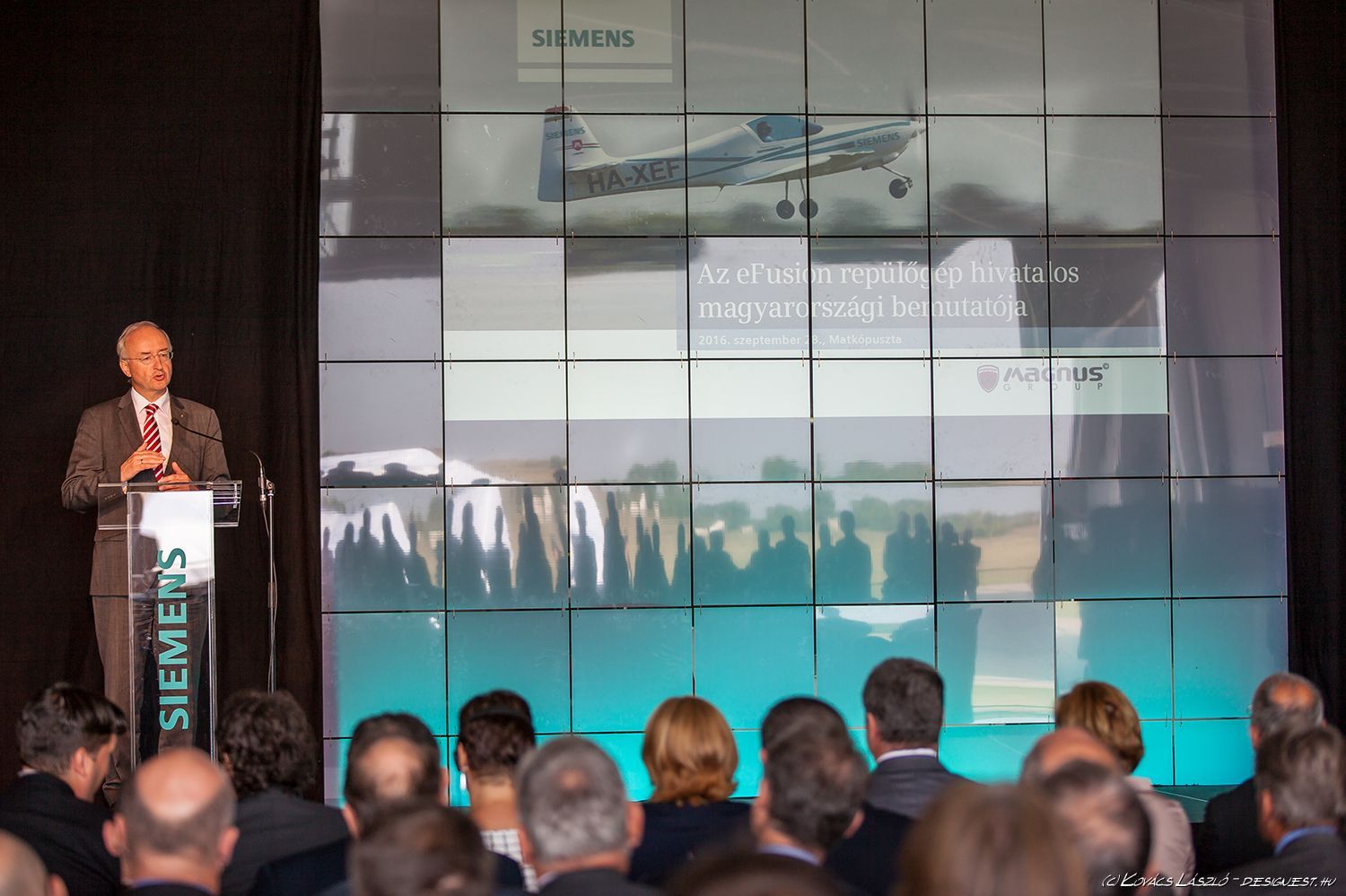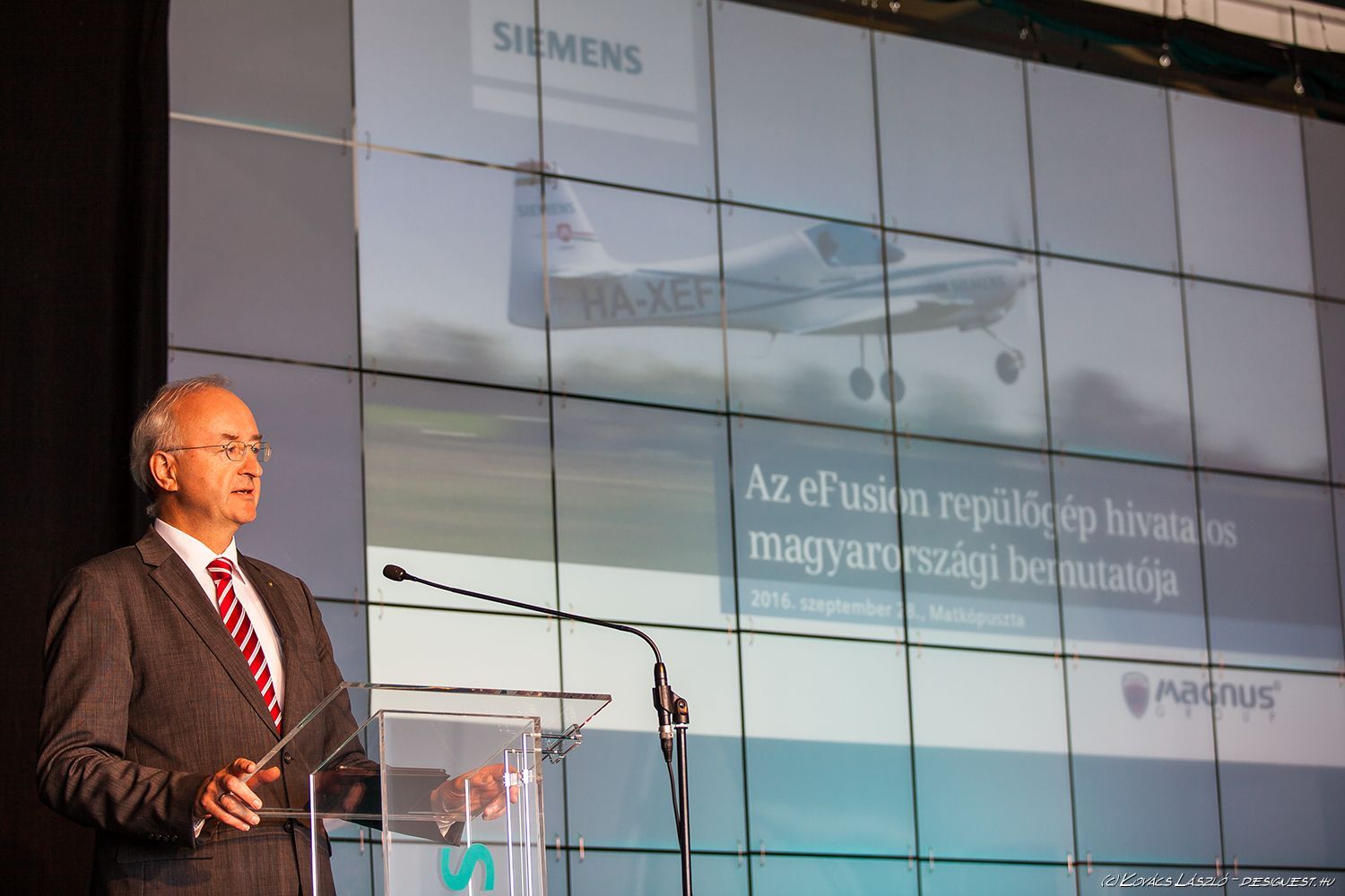 Kecskemét melletti Matkópusztai repülőtéren mutatták be az eFusion névre keresztelt, teljesen elektromos hajtású repülőgépet, amely a kecskeméti Magnus Aircraft és a Siemens AG közös fejlesztése.